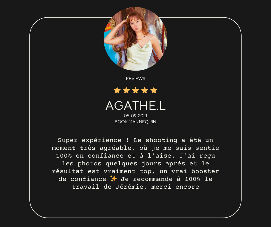 Tout au long de la séance, je vous guide et partage avec vous mes meilleurs conseils et astuces pour vous mettre à l’aise et obtenir des images fortes et authentiques. Mon objectif est de révéler votre potentiel et de vous aider à décrocher les opportunités que vous méritez.