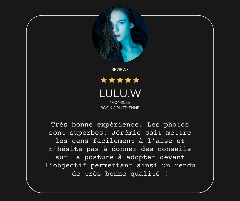 Pour un book complet et attrayant, il est important de varier les styles. Ainsi, je vous conseille de prévoir jusqu’à 5 looks, allant de la tenue la plus décontractée à la plus sophistiquée. Les séances peuvent se dérouler aussi bien en studio qu’en extérieur – les deux environnements étant complémentaires pour mettre en valeur votre palette de styles. Un décor varié et une sélection réfléchie des tenues vous aideront à créer un book dynamique et fidèle à votre image.