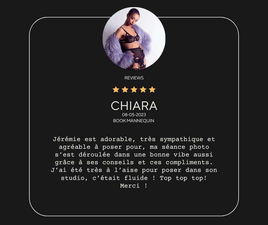 Chaque modèle est unique et a des attentes spécifiques. C’est pourquoi j’oriente la séance en fonction de vos besoins : portraits, photos de mode, beauté ou lingerie. Une maquilleuse ou un coiffeur peut également être sollicité sur demande, pour parfaire votre look en fonction des tenues sélectionnées.